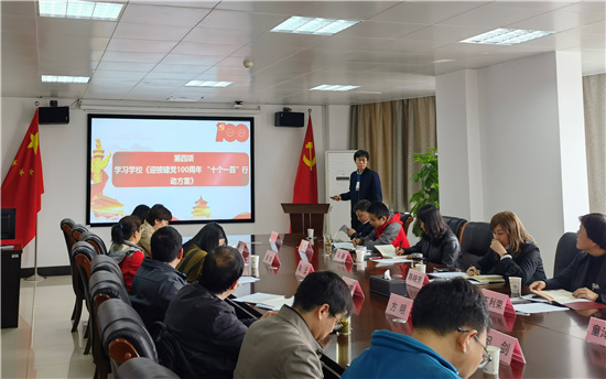 漫画18 党委副书记杨伟波领学学校《迎接建党100周年“十个一百”行动方案》,并就《漫画18 党委开展党史学习教育的实施方案》进行了工作部署。