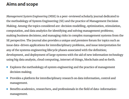2.评选优秀论文,并推荐到国际期刊《Management System Engineering》发表。