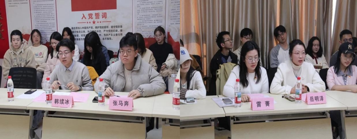 学思践悟筑根基,学校研究生讲师团成员王宇霞、学院研究生资产评估党支部曹鑫怡、中南财经政法大学习近平经济思想理论宣讲团刘利钊、汪颢哲依次领学,以“烽火印记与青春回响”“学习党的二十届四中全会精神”为主题号召新时代研究生党员铭记历史、砥砺初心,在实现中华民族伟大复兴的征程中勇担使命、奋发有为。