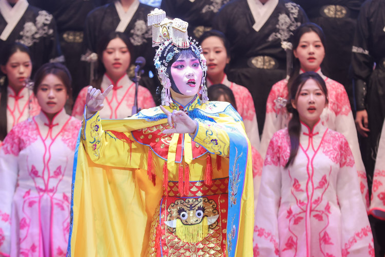 为了呈现最佳表演效果,漫画18 合唱团的同学们付出了大量心血。从歌曲编排到声部磨合,从京剧身段训练到情感表达拿捏,大家利用课余时间反复打磨细节,克服了诸多挑战。指导老师全程悉心指导,从发声技巧、队形设计到服装道具搭配都严格把关,团队成员们相互鼓励、默契配合,在一次次排练中凝聚起强大的向心力。