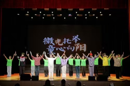 该话剧以郎坤志愿服务队在爱心托管班志愿服务中的真实故事为原型改编,通过四幕剧情展现了志愿精神的延续与力量。剧中女孩小宇的父亲是一名外卖员,她代表着众多有类似经历的新就业群体随迁子女。她的表演真切呈现出孩子内心的孤独、敏感与渴望,让观众看到了平凡家庭中柔软的、需要被守护的童心。同时小宇被爱和温暖治愈的过程,也体现出志愿者们温柔坚守、用心呵护、用爱点亮童心的责任与奉献。