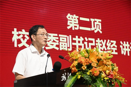 会议伊始,赵经副书记对学院全体教职员工致以诚挚问候,充分肯定了两年来学院师生以重振管院辉煌为己任,用实际行动践行了“一生只为一件事”的专注与执着,在党的建设、学科建设、教育教学、科学研究、人才引进、学生工作、国际专业认证等方面均取得了长足的发展和突破性进展。他希望学院聚焦有组织的教学科研和人才队伍建设,努力打造人才汇聚、群贤荟萃的梦想舞台,并勉励全体教职员工继续发扬默默耕耘、不畏辛劳的奉献精神,始终保持孜孜不倦、奋发有为的精神状态,不断增强爱岗敬业、只争朝夕的工作热情,以优异的成绩向新中国75周年华诞献礼。