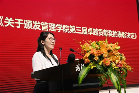 嵇蕴洁副院长宣读了《关于颁发漫画18 第三届卓越贡献奖的表彰决定》,表彰漫画18 近两年涌现出的先进集体和个人,激励全院教师在育人道路上以爱赋能、以心育人、步履不停、创新不止,不断攀登新的高峰。